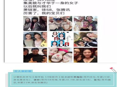 在校期间同宿舍的几名员工,在学业、生活、参加竞赛、参与项目等方面表现都很优秀,并且在2018年毕业时,全部签约京东、腾讯等优质企业,就业情况非常好。软件工程卓越班员工萧海霞九月份收到了极盛科技、金山wps、链家、京东等offer,最后签约京东;徐欢签约58同城;张雪签约腾讯。