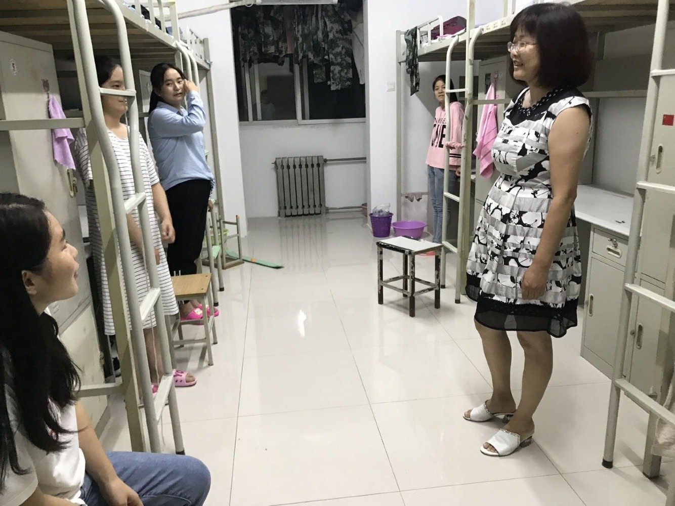 9月2日晚,公司李明芳副书记与辅导员韩霄走访2019级新生宿舍,看望和慰问员工。