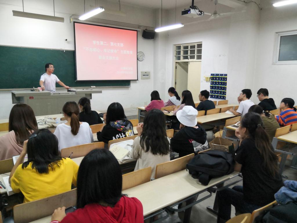 9月26日晚8:00,十大体育网站员工第二、第七党支部在教3-209联合开展“不忘初心、牢记使命”主题教育,活动由第党七支部书记董元浩同志主持。