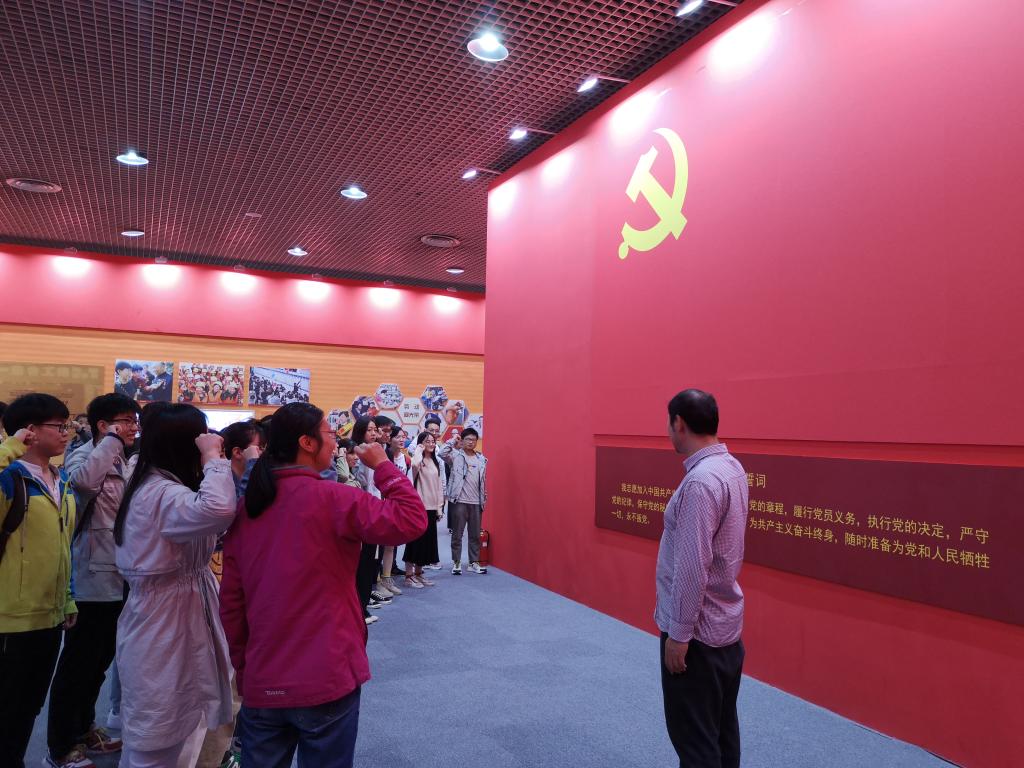 活动中,各党员同志不时驻足观看展品,感受不同时期的社会生活风貌,认真听取讲解,相互探讨、交流,并在吴宗原老师的带领下,面向鲜红的党旗,举起右拳,铿锵有力地宣读了入党誓词,重温入党初衷,再忆入党初心。参观结束后,感慨良多的各党员同志写下寄语,表达自己对祖国的美好祝福。