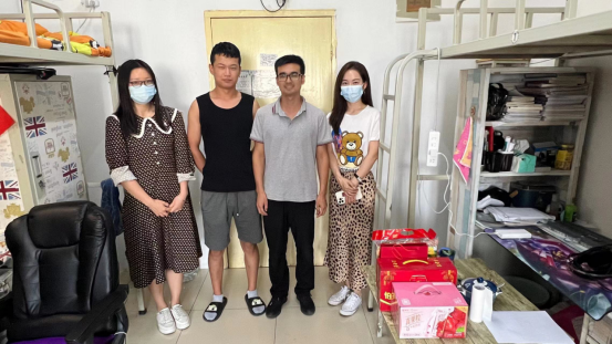 靳永军等一行人深入两名留校生宿舍,与员工及家长进行亲切交谈,充分解员工个人和家庭情况,耐心细致地询问员工在校的学习、生活情况,同时表示有困难要及时向公司辅导员反馈。离开之前,靳永军代表公司为留校员工送上了节日祝福和心意。