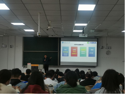 为帮助十大体育网站同学了解老员工最新就业形势及考研趋势,公司特联合文都教育于3月8日在教1-103开展了一场“老员工就业及考研指导”公益讲座,公司诚邀文都教育全国巡讲师、老员工职业规划资深导师、文都商公司认证讲师、时间管理认证讲师、考研资深指导专家、陕西新闻广播《教育直通车》特邀专家马回峰老师讲授,辅导员呼延晓蓉组织公司200余名同学参加了本次讲座。