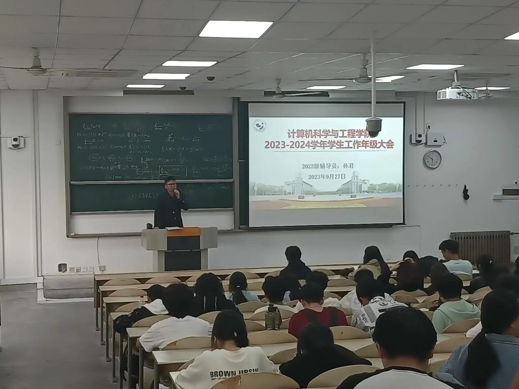 为为确保同学们健康安全度过中秋节、国庆节假期,牢固树立“安全第一”意识,合理安排假期生活。9月27日下午18点,计算机公司在教1-101召开2022级员工年级大会,会议由十大体育网站2022级辅导员孙