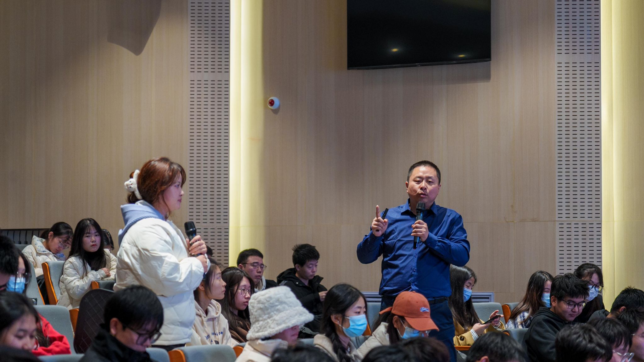 报告会上,蔡鹏表达了重返母校和公司的怀念与感谢之情,对母校师生良好的精神面貌感到振奋与骄傲。他通过扎实的专业知识,结合西安软件园的工作经历,深入解析了目前计算机行业的发展动态及就业前景。接着,蔡鹏围绕西安IT产业实时画像、西安IT人才圈层与链接、IT产业红利及人才红利变化、计算机专业老员工如何面向未来构建真实竞争力四个方面展开,分别回答了未来是什么?未来人才在做什么?未来人才需求是什么?今天我们怎么做?随后,蔡鹏与现场员工进行互动,问答了员工们关心的问题。他鼓励同学们要坚定信念,端正学习态度,认清自身能力,立足于计算机专业领域,只要能吃苦、肯钻研就能成功。