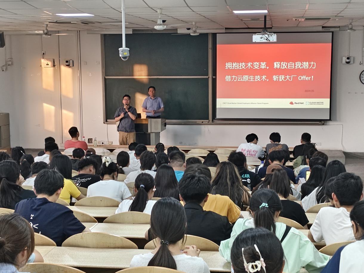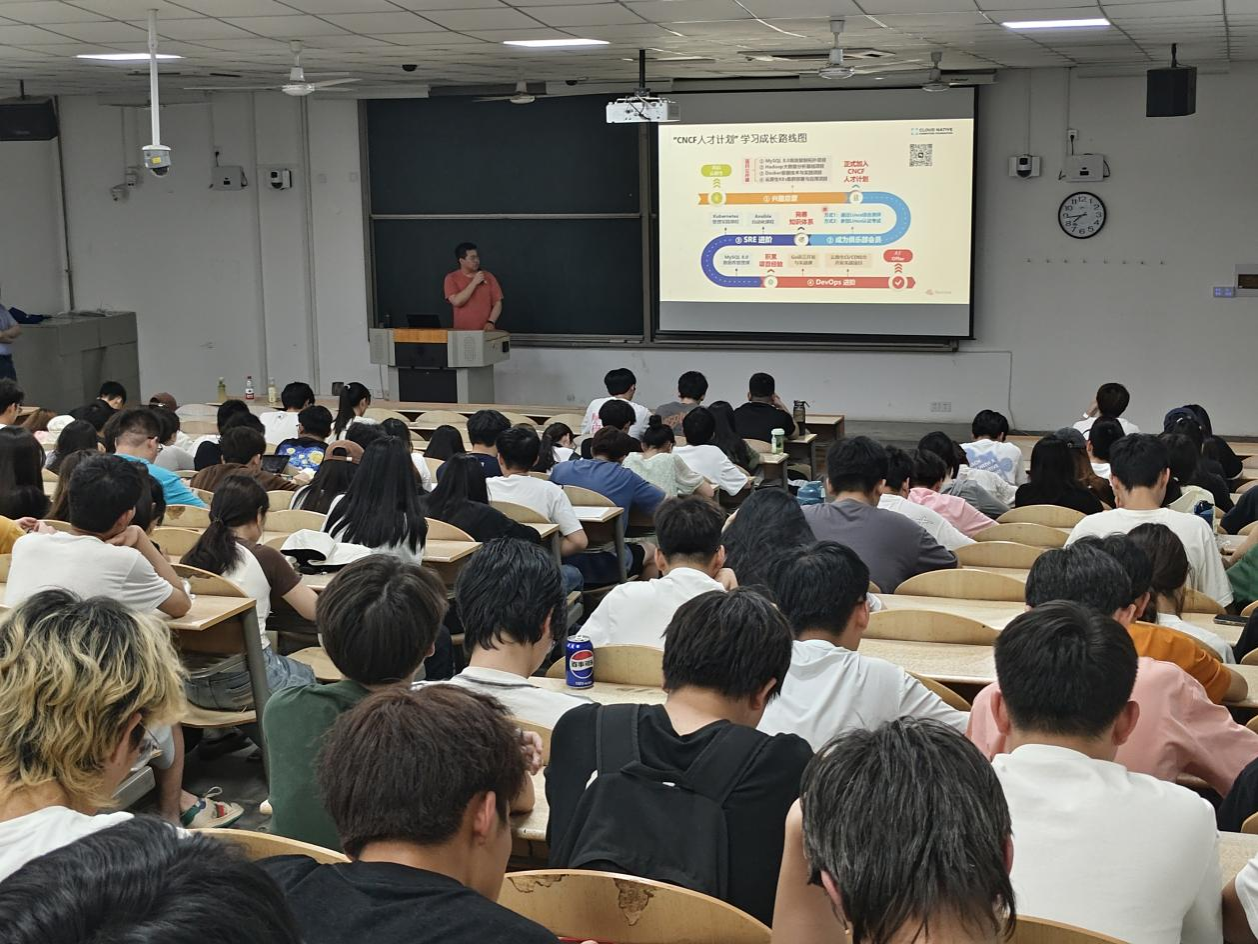 5月22日,晚19点,十大体育网站在教1-103举办“拥抱技术革新,释放自我潜力”云原生技术宣讲会,近300名学子参加本次活动。