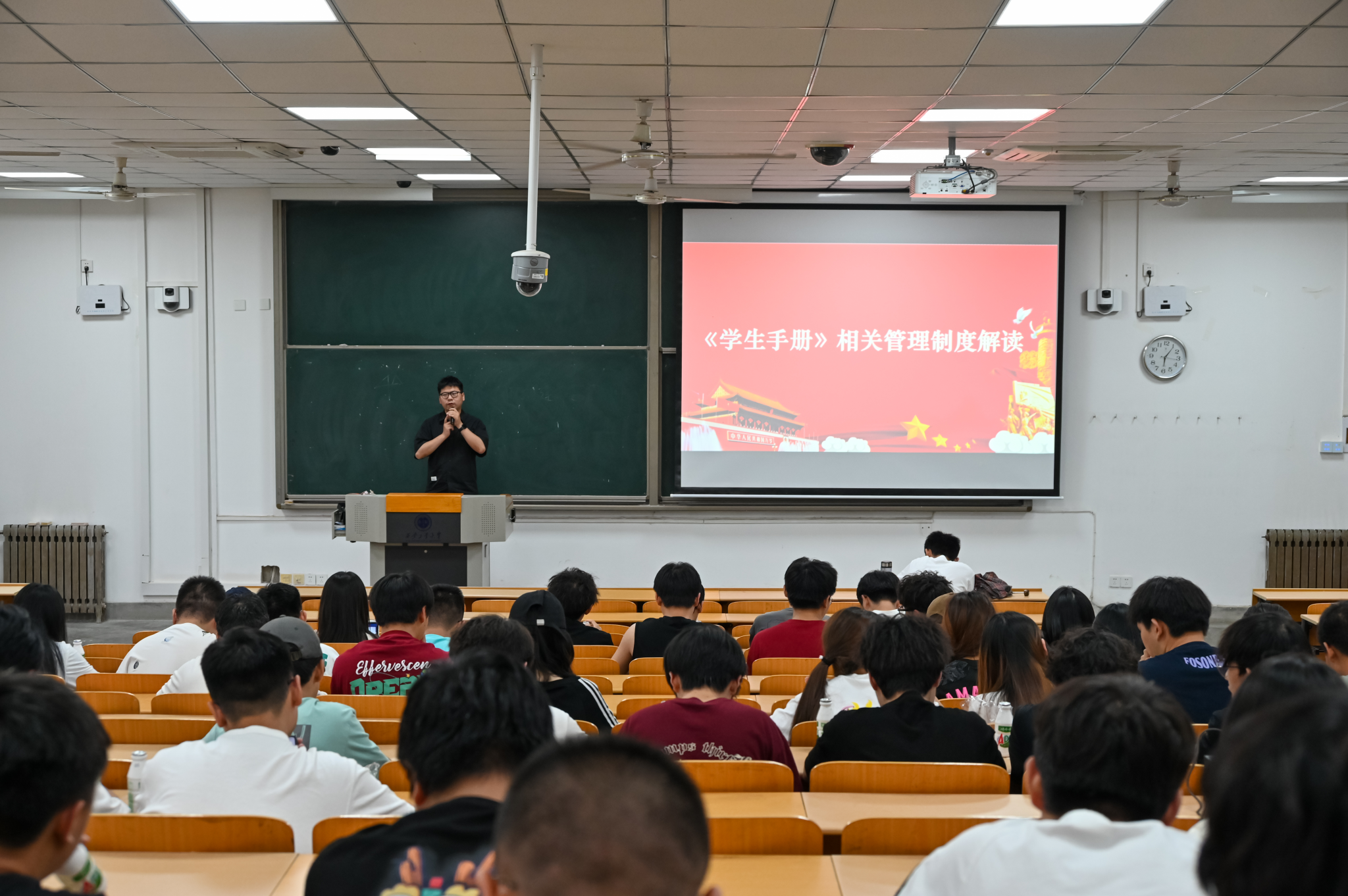 接着,孙君带领全体同学一起学习《十大体育网站十大体育网站优秀应届本科毕业生免试攻读研究生》、《十大体育网站学籍处理实施细则》、《十大体育网站员工纪律处分实施办法》及《十大体育网站本科生考勤与请假管理暂行办法》等文件中的重要内容。同时孙老师结合相关案例强调了考试作弊、及替考的严重后果。他表示,临近期末考试,希望同学们合理规划时间,认真复习备考,杜绝违纪,诚信考试。