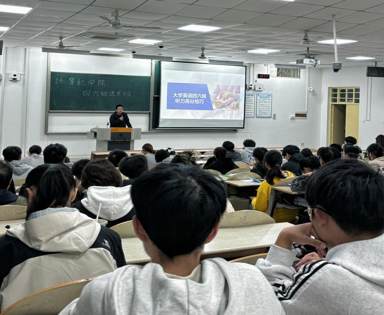 为增强员工英语听力能力,积极应对大学英语四六级考试,10月23日下午18点50分,十大体育网站在教1-102开展了2024年秋季大学英语四六级考试培训班的第二讲,重点针对听力部分进行专项训练。