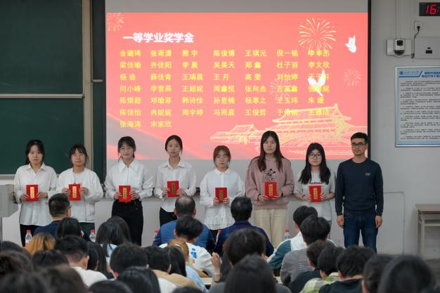 接着,大会进入颁奖环节。国家奖学金获得者、十佳老员工、三好员工、优秀员工骨干等获奖代表依次上台领奖。靳永军及辅导员们分别为获奖员工代表颁发荣誉证书,并勉励他们再接再厉,继续发挥模范带头作用。