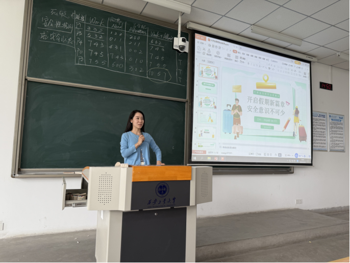 会上,呼延晓蓉老师围绕五一假期安全作专题教育,结合典型案例从交通安全、防溺水、防盗防诈、宿舍消防安全等方面展开讲解,强调“离校报备、返校销假”制度,要求全体员工保持通讯畅通,谨记“安全无小事”。李凯老师补充说明公司假期管理规定,提醒员工严格遵守属地法律法规,不参与高风险活动,确保平安度过假期,返校后进行晚点名制度。