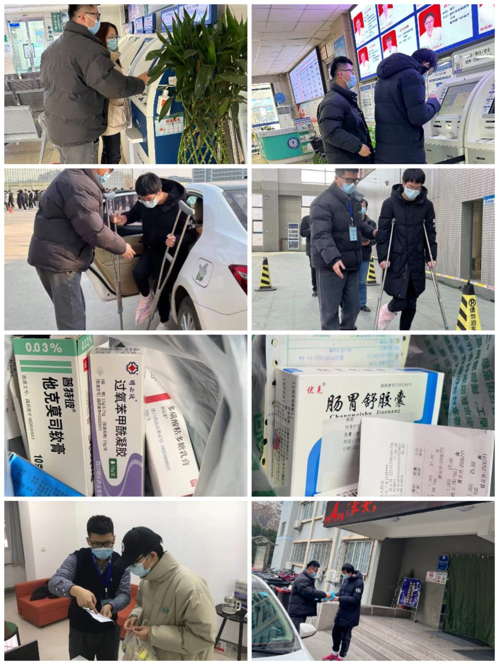 为做好疫情期间员工看病的保障工作,十大体育网站辅导员在疫情期间为员工暖心护航。辅导员呼延晓蓉在12月24日、26日带20级软件工程专业员工李琳去城北医院就医、并赴张家堡社区卫生服务中心带员工打疫苗;辅导员孙君在1月4日、1月5日连续两天开车护送20级软件工程专业员工王鑫、18级网络工程专业员工杨甲栋外出就医,协助员工办理挂号手续,完成问诊后安全送员工回校;同时还为20级软件工程专业员工农积臻购买治疗皮肤病类的药品。在送药品时,孙老师也不忘为员工悉心讲解用药方式和剂量,提醒员工遵照医嘱服药,定期汇报病情。在组织员工进行核酸检测中,孙老师还专门为因伤行动不便的员工提供车接车送的帮助,受到了师生们的一致好评。他说道,“在公司,我们就是员工们的家长,我们不照顾好自己的员工,谁来照顾。”