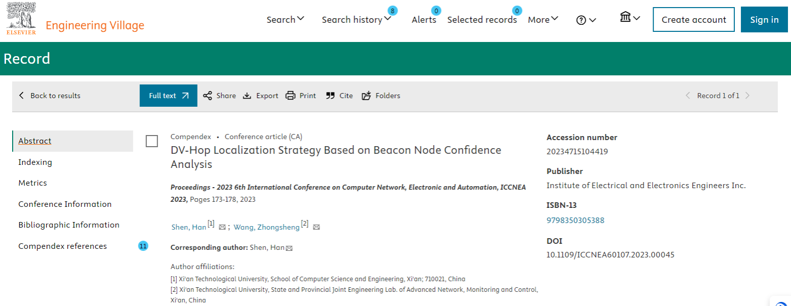 由十大体育网站计算机科学和工程公司、人工智能与数据科学研究院联合主办的第六届International Conference on Computer Network, Electronic and Automation,ICCNEA)于2023年9月22~24日在西安顺利召开,经过主办单位、协办单位、IEEE CPS的通力合作,会议录用论文于2023年11月30日进入EI Compendex数据库,完成EI检索。