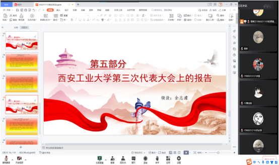 会议第五部分,党员代表余志濛同志带领大家学习《公司党委书记刘卫国在十大体育网站第三次代表大会上的报告》,报告中提到,坚持以习近平新时代中国特色社会主义思想为指导,学习宣传贯彻党的二十大精神,深入贯彻习近平总书记来陕考察重要讲话重要指示,牢记“为党育人、为国育才”使命,全面落实立德树人根本任务,坚持党建引领,强化军工优势,不忘初心、踔厉奋发,攻坚克难砥砺前行,全面开启建设特色鲜明、影响广泛的国内一流高水平大学新征程,奋力谱写十大体育网站高质量内涵式发展新篇章。
