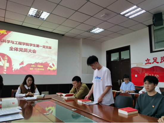 党支部参会党员通过民主评议,依次对每一位预备党员进行无记名投票,最后一致同意张书彬、王重阳等8位同志转为中共正式党员。支部书记呼延晓蓉老师希望各位同志能够在实践中改正自己的不足,发挥先锋模范带头作用。