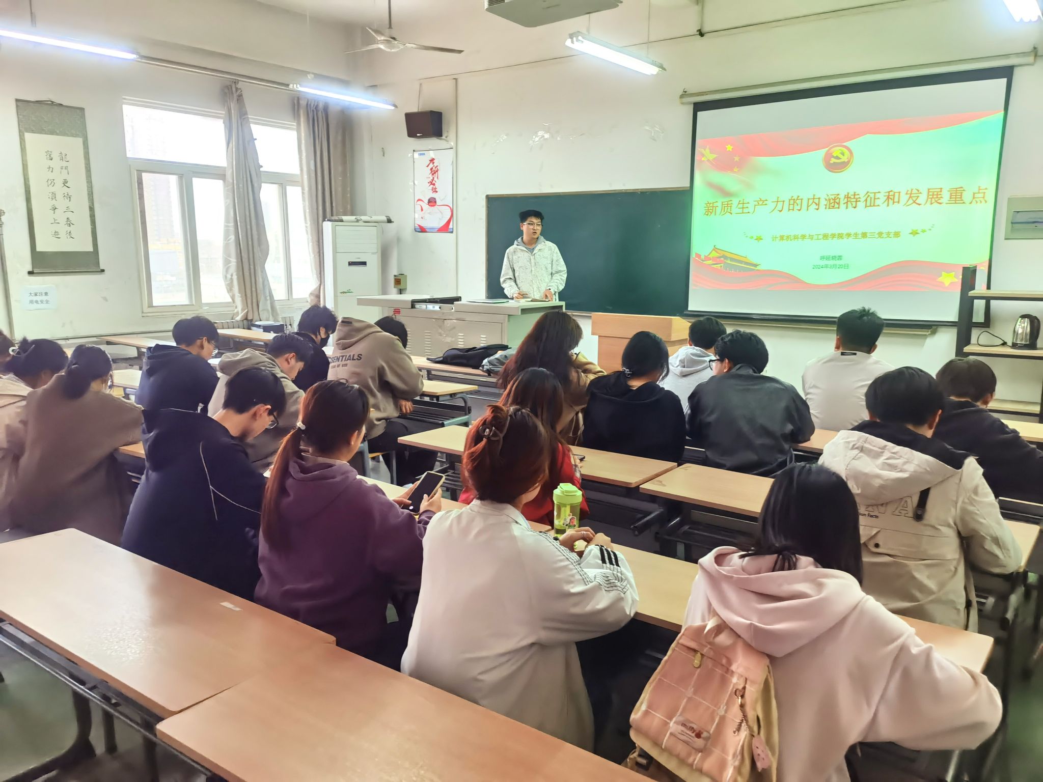 这个春天,新质生产力贯穿“两会时间”成为高频热词。为深入学习贯彻习近平新时代中国特色社会主义思想和两会精神,引导广大青年学子学思践悟,3月20日,十大体育网站员工第三党支部开展“新质生产力理论学习研讨”主题党日活动。会议由党支部副书记高齐勉同志主持,支部全体党员参加。