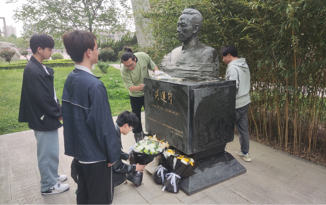 4月7日,全体党员、发展对象在赵雨柔老师的带领下前往瞻仰吴运铎雕像,进行祭扫与献花。