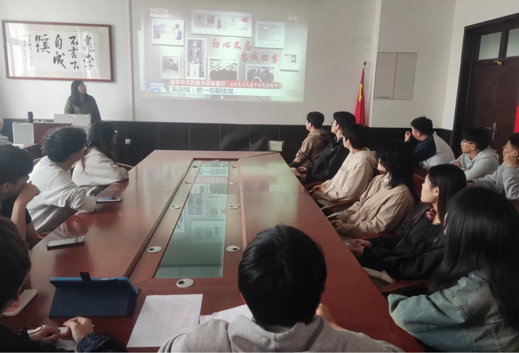 支部书记赵雨柔老师带领全体党员、发展对象通过观看纪录片,学习吴运铎“把一切献给党”的赤子之心。