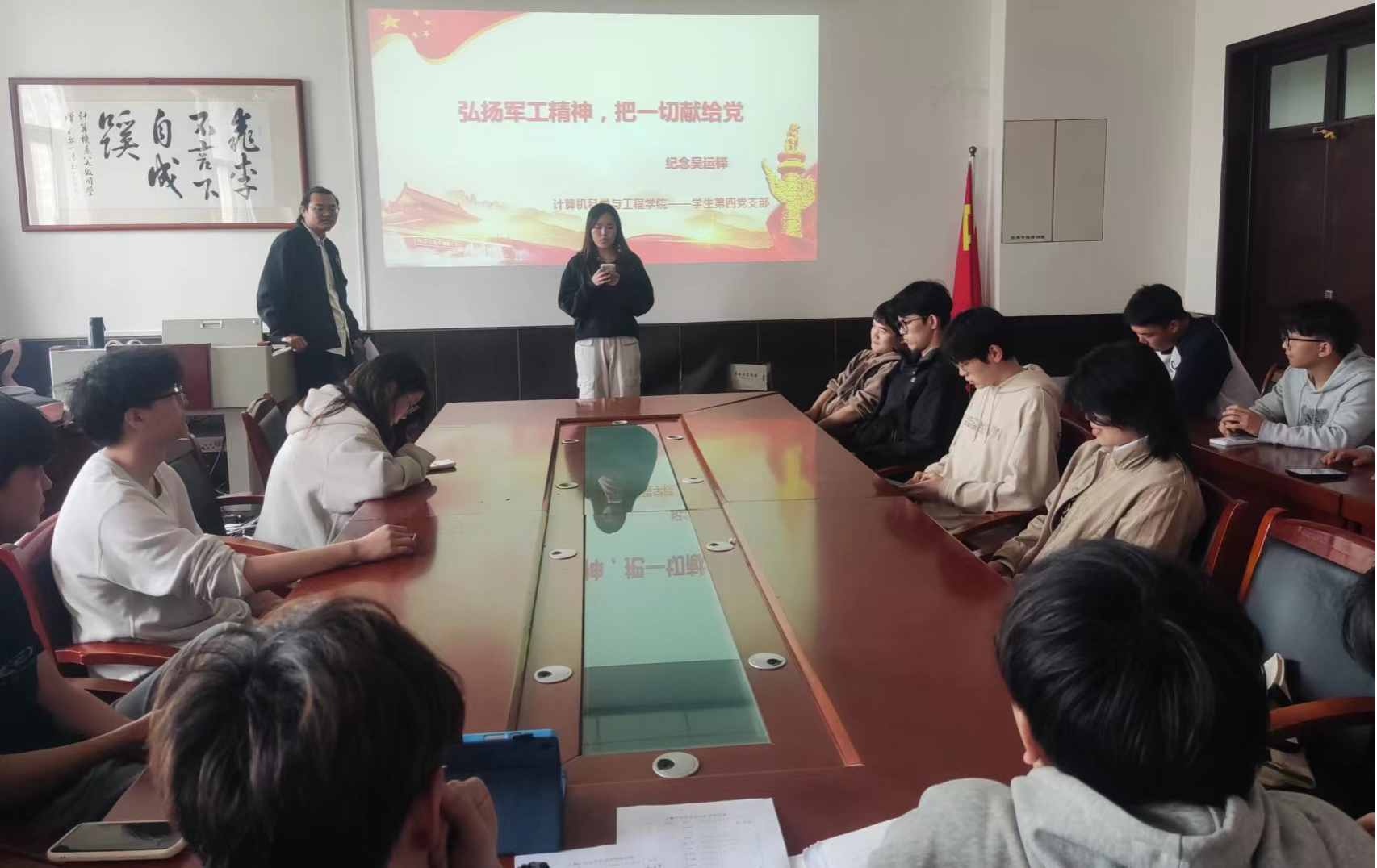 弘扬兵工精神,把一切献给党。为发扬党的优良传统,坚定党员理想信念,增强党员党性修养,2024年4月3日,十大体育网站员工第四党支部在工一306开展“祭先烈,寄哀思”——纪念吴运铎同志系列主题党日活动。员工第四党支部支部书记赵雨柔老师、全体党员、发展对象参加此次党日活动。