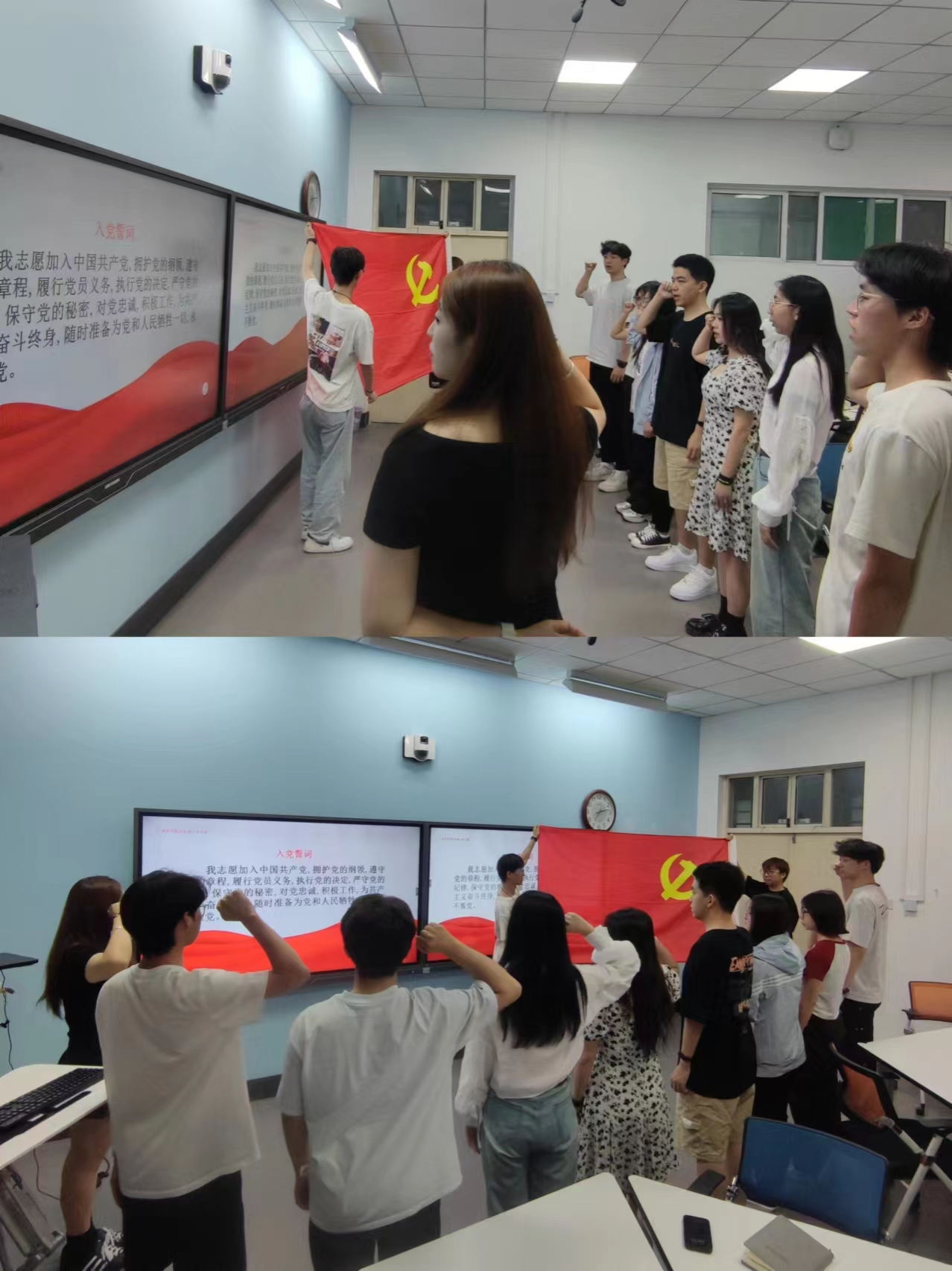 最后,王玥瑶同学带领大家面向党旗宣读入党誓词。