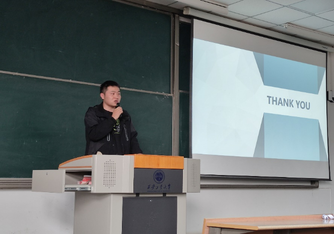 第四位分享者是公司2019级员工孟瑞杰,他指出打算就业的同学可以实习等秋招或者实习一年转正。他说分配到的面试岗位是很重要的,所以我们一定要重视求职就业的各个环节。我们要注意简历照片要证件照,要很标准的,不可以敷衍了事,同时也要注意面试用语,给面试官留下好的印象,简历就是要体现个人能力的,他认为竞赛获奖>项目经历>实习经历。最后鼓励学弟学妹用坚持不懈的行动和艰辛的汗水追逐个人理想。